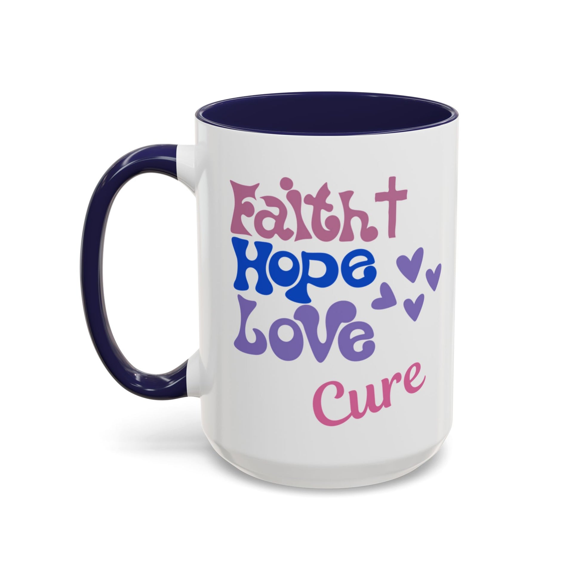 Faith Hope Love Cure Ceramic Coffee Cup 15 oz Cancer awareness, breast cancer