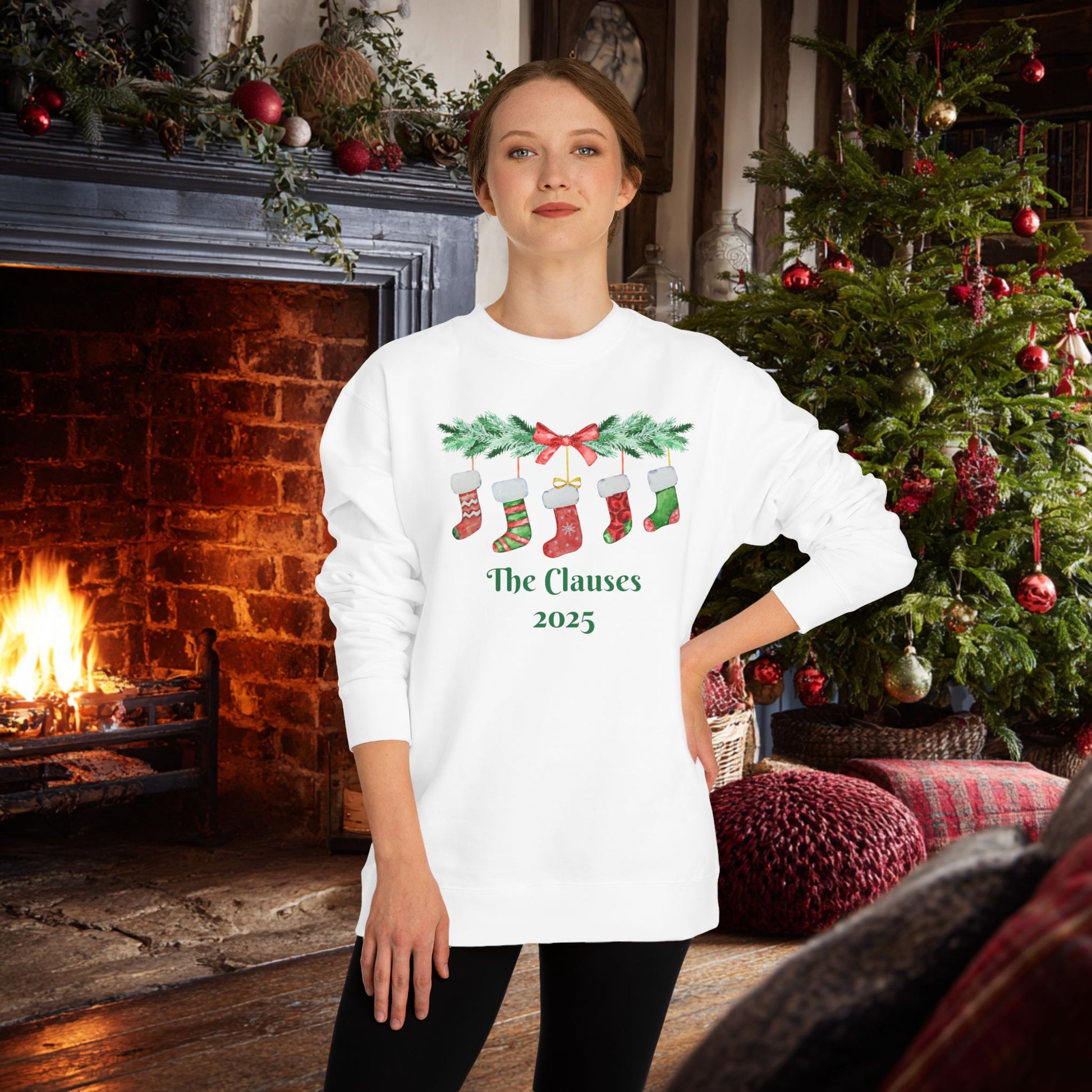 Custom Personalizable Merry, Christmas Stockings Long Sleeve Sweatshirt. Super cozy cute sweatshirt. Made with an 80% Cotton - 20% Polyester blend and a yarn thickness of 20 singles for more warmth, this is a prime choice for Fall & Winter season. This is the perfect Christmas Gift! Custom text is optional.